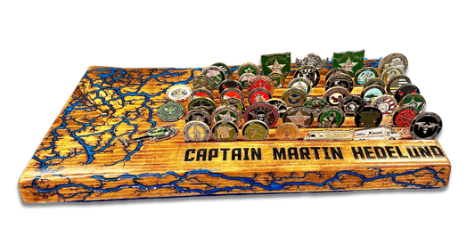 Custom River Challenge Coin Holder - Live Edge with Personal Items